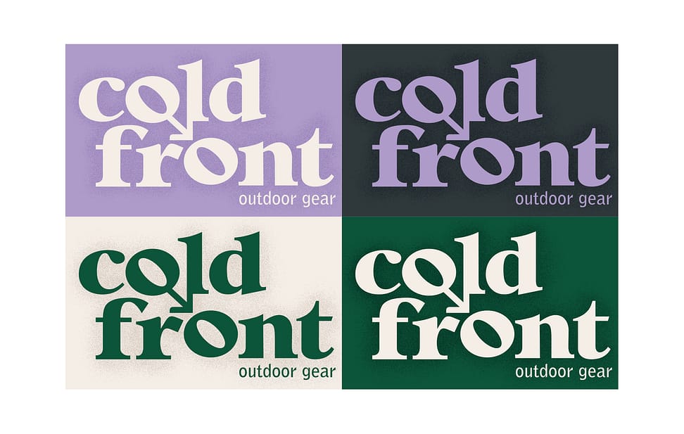 The goal of this project was to design two completely different brands from the same phrase. “Cold Front” is intriguing because it could be a business that operates in hot or cold weather. Cold Front Outdoor Gear is a ski shop in Glendale Springs, Colorado which specializes in winter gear and sporting goods. Cold Front Creamery and Cafe is an ice cream and coffee shop in Buffalo, NY. Each of the brands are vastly different and unique, despite having the same name.